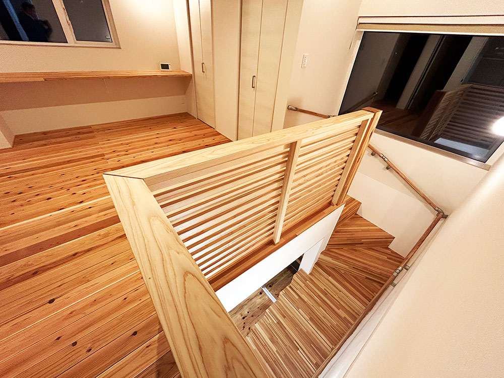 細かい仕様としては内外共に地域の木材(杉)を沢山使っており地域の材料を地域の工務店が使う環境にエコな取り組です。