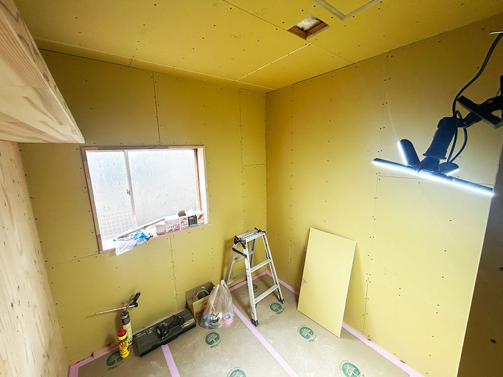 更には壁材にはアイカ工業のモイス内装用6㎜厚を貼り更に調湿効果をパワーアップさせました。